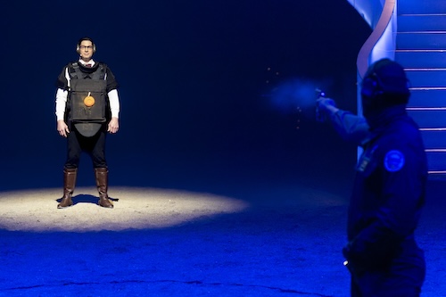Au centre de la piste, Firmin Gruss s’est tenu immobile, incarnant la confiance totale nécessaire à cette démonstration. Face à lui, un membre du GIGN a exécuté le tir avec une précision millimétrée, illustrant la rigueur, la maîtrise et la confiance mutuelle qui caractérisent cette unité d’élite. Pendant quelques secondes, le chapiteau entier a retenu son souffle. Puis l’émotion et l’admiration ont envahi la piste, saluant un moment d’une intensité rare où courage, discipline et confiance absolue se sont rencontrés.